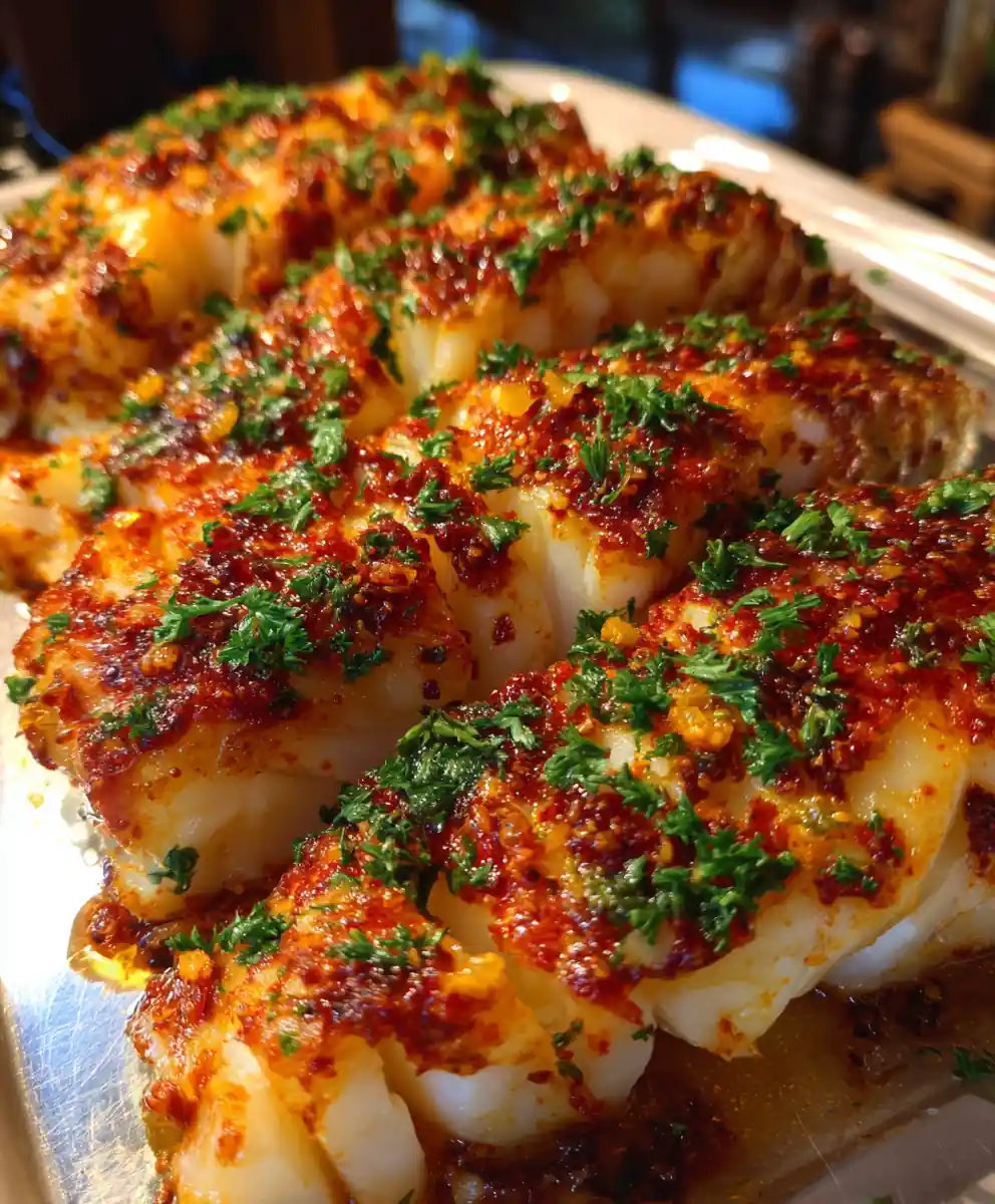 - Garnish and Serve: Remove from the oven, immediately squeeze fresh lemon juice over the hot cod, and garnish with fresh chopped parsley before serving.