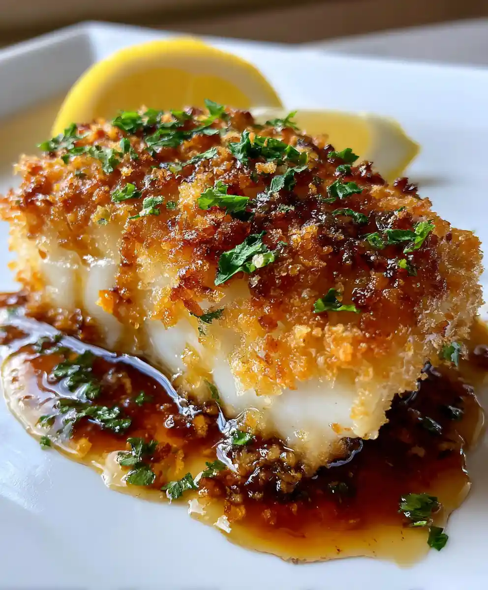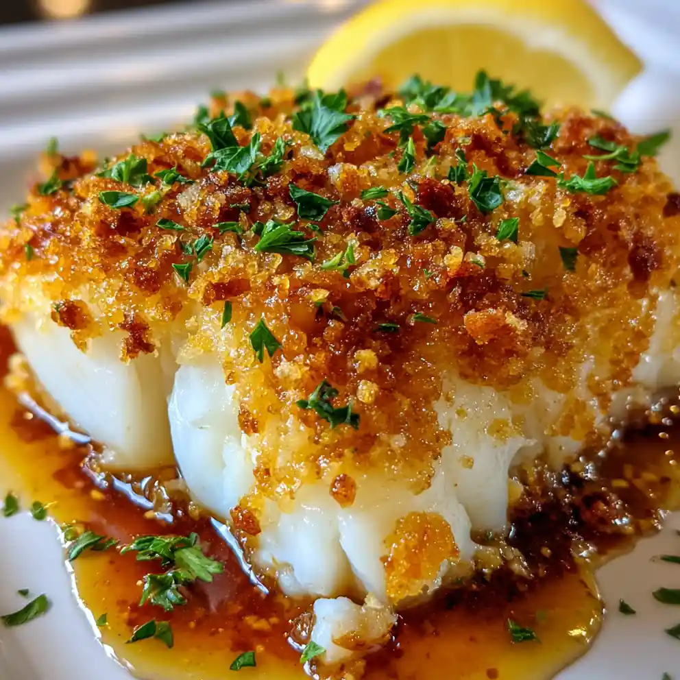 - Rest, Drizzle & Garnish: Rest cod, drizzle with lemon mixture, and garnish with parsley and lemon wedges.