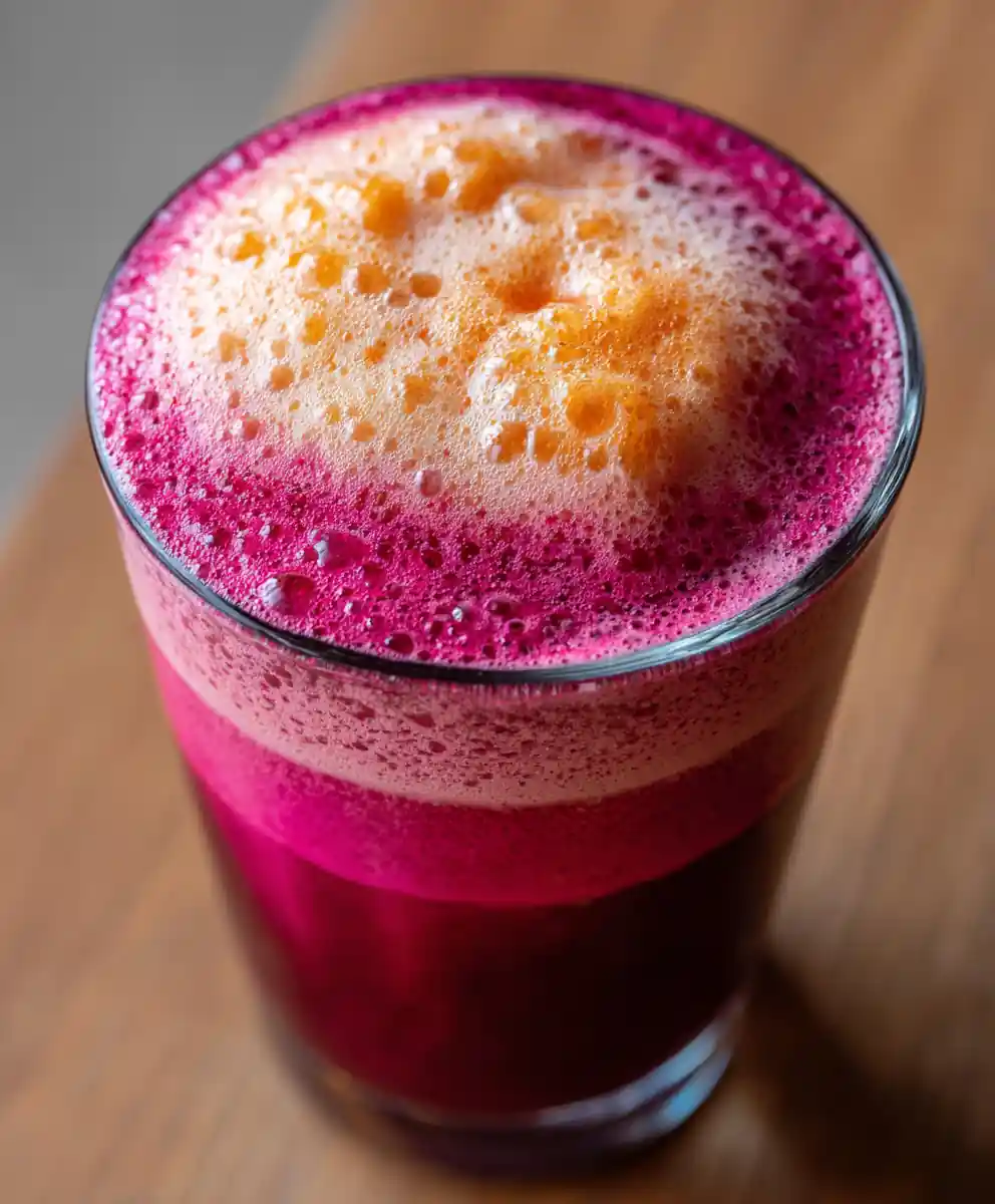 5. Serve & Enjoy: Pour the beautiful beet smoothie into glasses. Gently spoon the citrus foam on top. Admire the stunning color contrast and the fresh citrus aroma before taking your first refreshing sip.