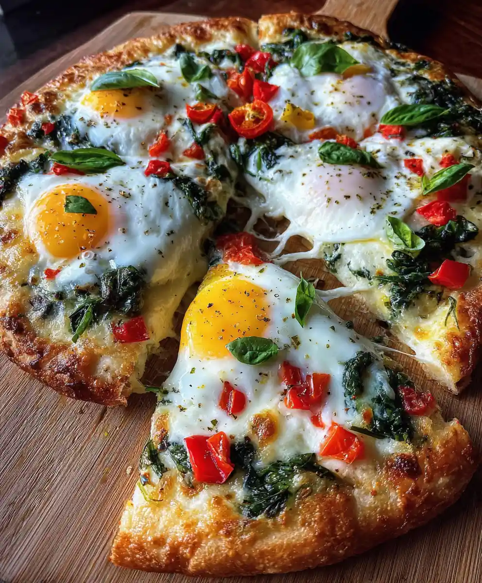 This breakfast pizza features vibrant sunny-side-up eggs, fresh tomatoes, and spinach on a crispy crust, offering a flavorful and nutritious meal perfect for busy mornings. It’s an easy, family-friendly option that transforms ordinary breakfast into an exciting dish.