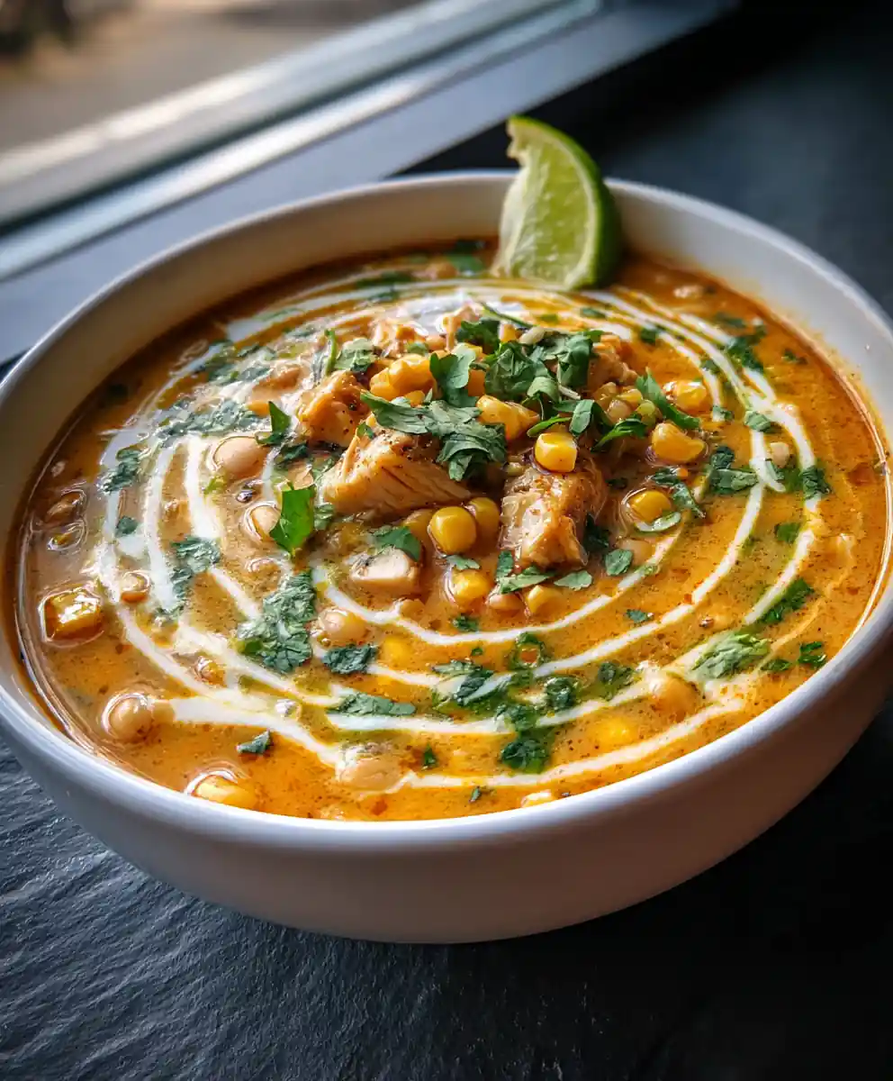 - Serve and Swirl: Ladle the hot chili into shallow bowls. Drizzle a spoonful of the warm poblano-corn cream in a clockwise spiral over each bowl, allowing it to pool slightly at the edges.