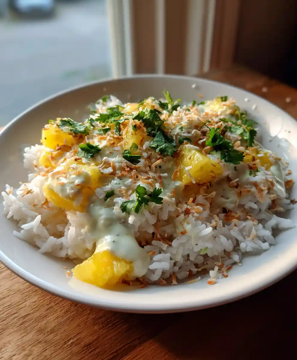 This Coconut Pineapple Rice with Lime-Coconut Cream Swirl is a vibrant and flavorful dish combining fragrant jasmine rice, sweet pineapple, and creamy coconut with a zesty lime twist. It’s a perfect side or light meal, offering a taste of the tropics.
