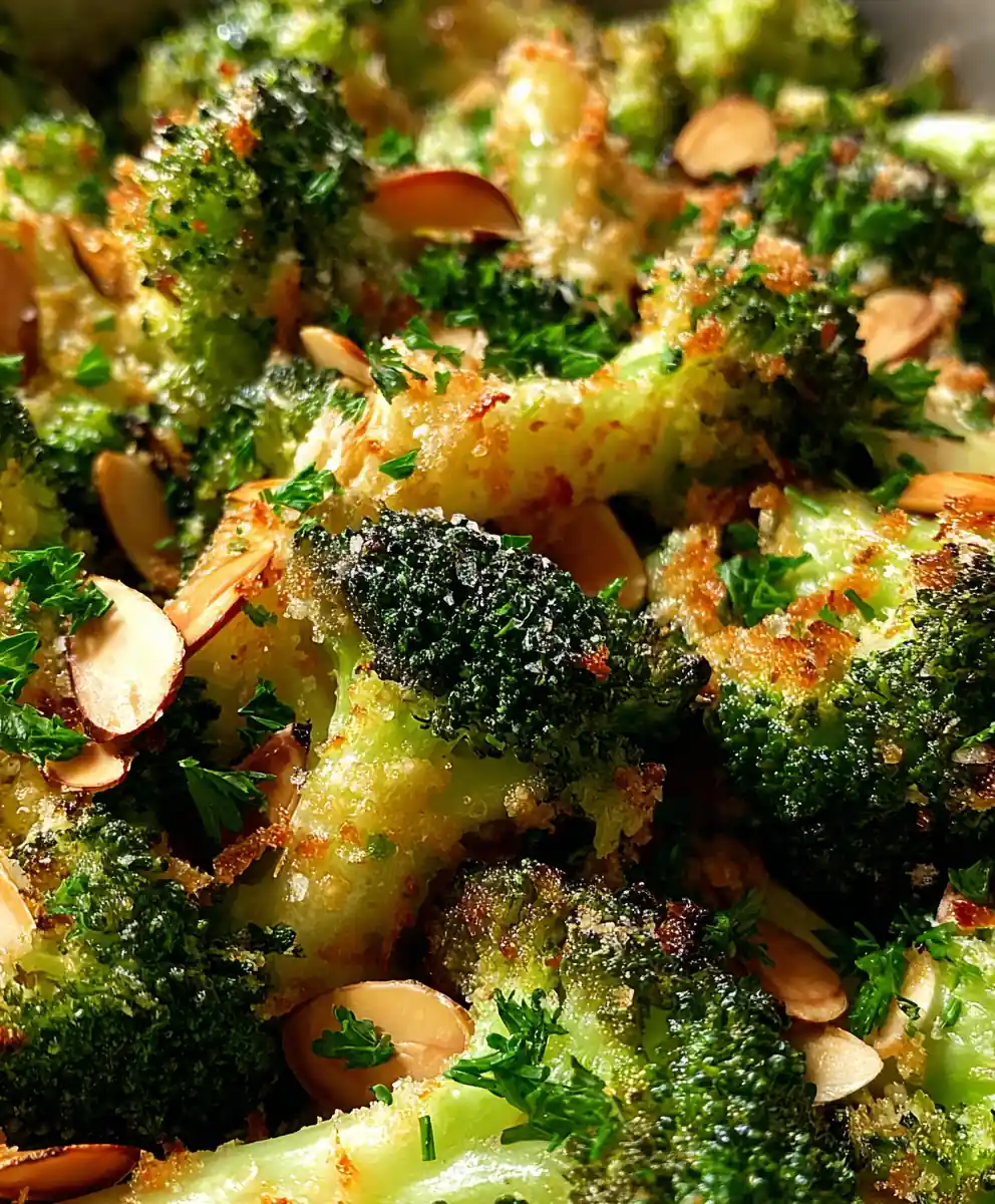 - Garnish and Serve: Transfer the broccoli to a serving dish. Drizzle with lemon-infused olive oil (optional) for an extra burst of citrus flavor. Sprinkle with toasted almond slivers and chopped fresh parsley for added texture and visual appeal. Let rest for 2 minutes before serving.