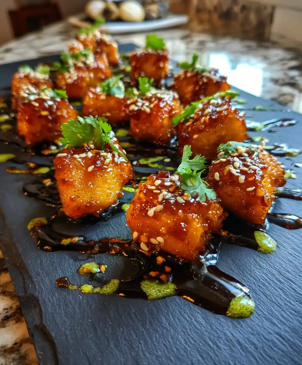 - Plate and Garnish: Arrange the crispy chicken on a serving plate. Drizzle generously with the warm lemon-ginger glaze, allowing it to pool around the chicken. Swirl the cilantro-lime drizzle artfully over the glaze. Sprinkle with toasted sesame seeds and garnish with fresh cilantro sprigs. Serve immediately.