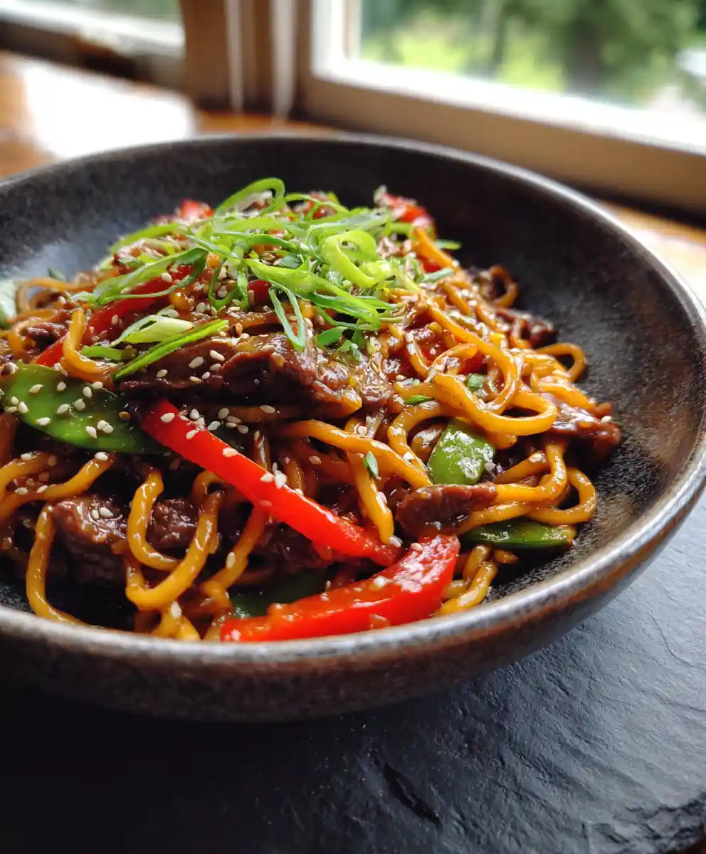 This Ginger Sesame Beef Lo Mein with Caramel Glaze is a quick and flavorful dish featuring tender beef, vibrant vegetables, and perfectly cooked lo mein noodles. It’s a restaurant-quality meal you can easily make at home in under 30 minutes.