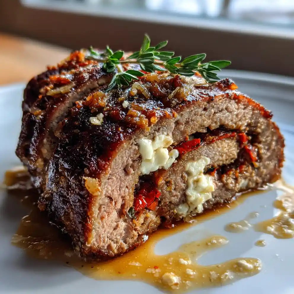 Form the Loaf (10 minutes): Preheat your oven to 160ยฐC (325ยฐF). Lightly grease a 23 cm x 13 cm (9-inch x 5-inch) loaf pan. Press half of the meat mixture evenly into the bottom of the prepared loaf pan. Spread the remaining roasted red pepper and feta paste (not the reserved portion) over the meat layer, leaving a small border. Carefully top with the remaining meat mixture, pressing down very firmly to eliminate air pockets and ensure a compact, solid loaf. If your meat mixture feels too loose, knead for another 2-3 minutes; proper emulsification prevents crumbling during slicing. My kids love to help me press the meat firmly โ itโs a great way to get them involved!