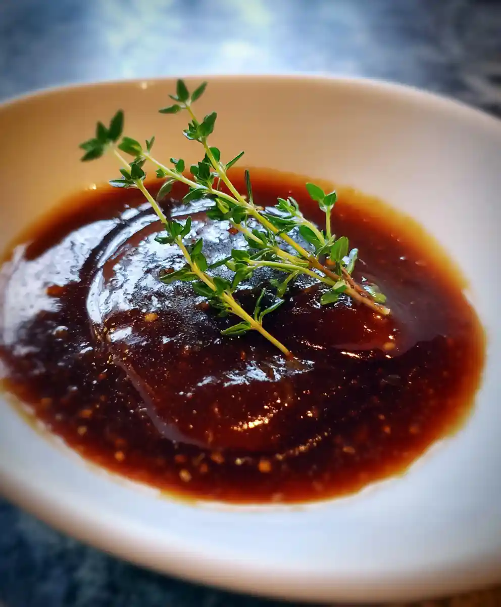 Serve Beautifully: Drizzle this richly colored, glossy honey balsamic dressing generously over a fresh salad. Garnish with a small, fresh thyme sprig for an aromatic and visual highlight.