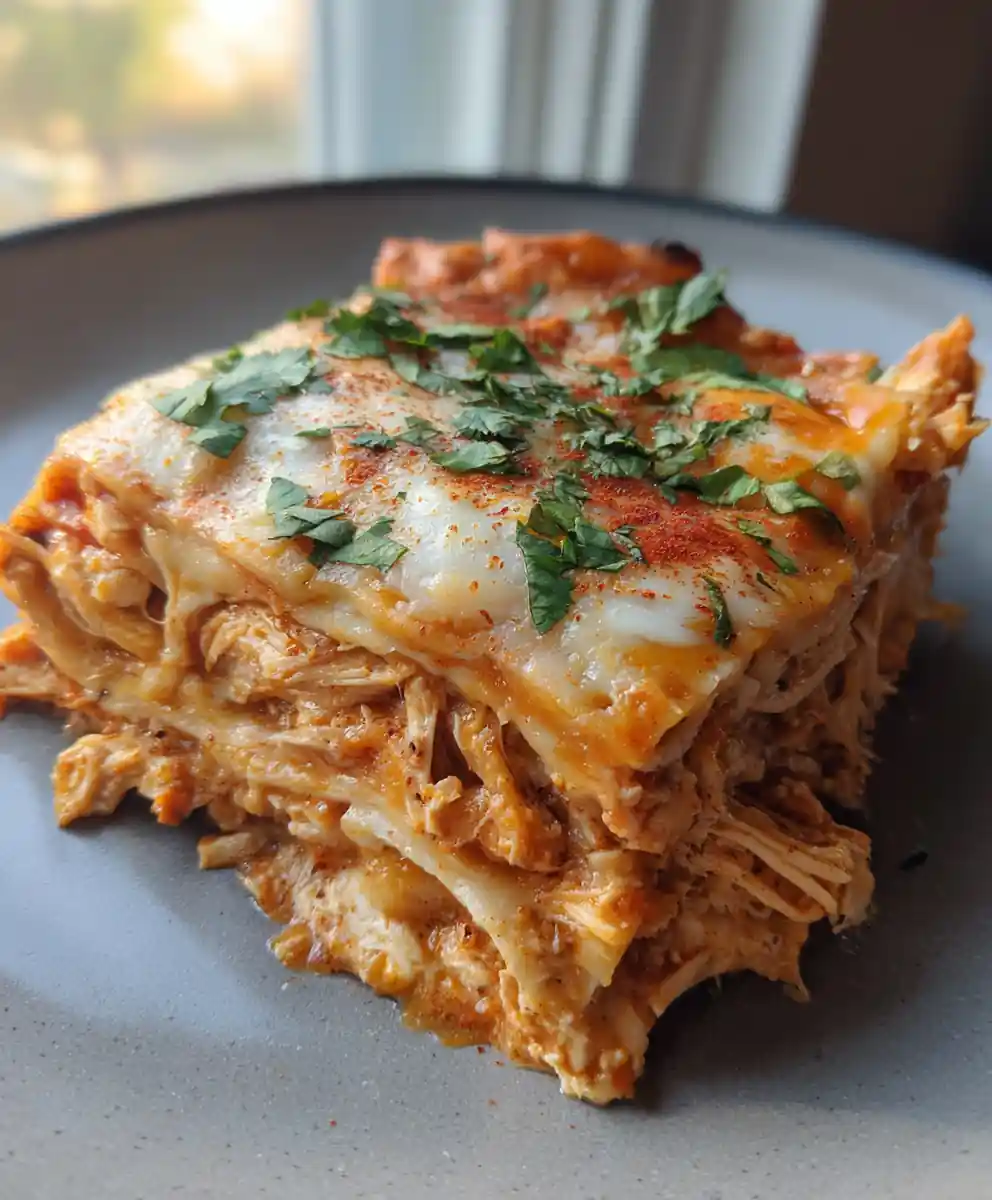 - Prep the ingredients and baking dish. Preheat oven to 190ยฐC (375ยฐF) and lightly grease a 23×33 cm (9×13 inch) baking dish. If tortillas are stiff, briefly warm them in the microwave for 15-20 seconds per stack to make them pliable. Have all shredded chicken, cheeses, and sauce components ready for assembly.
