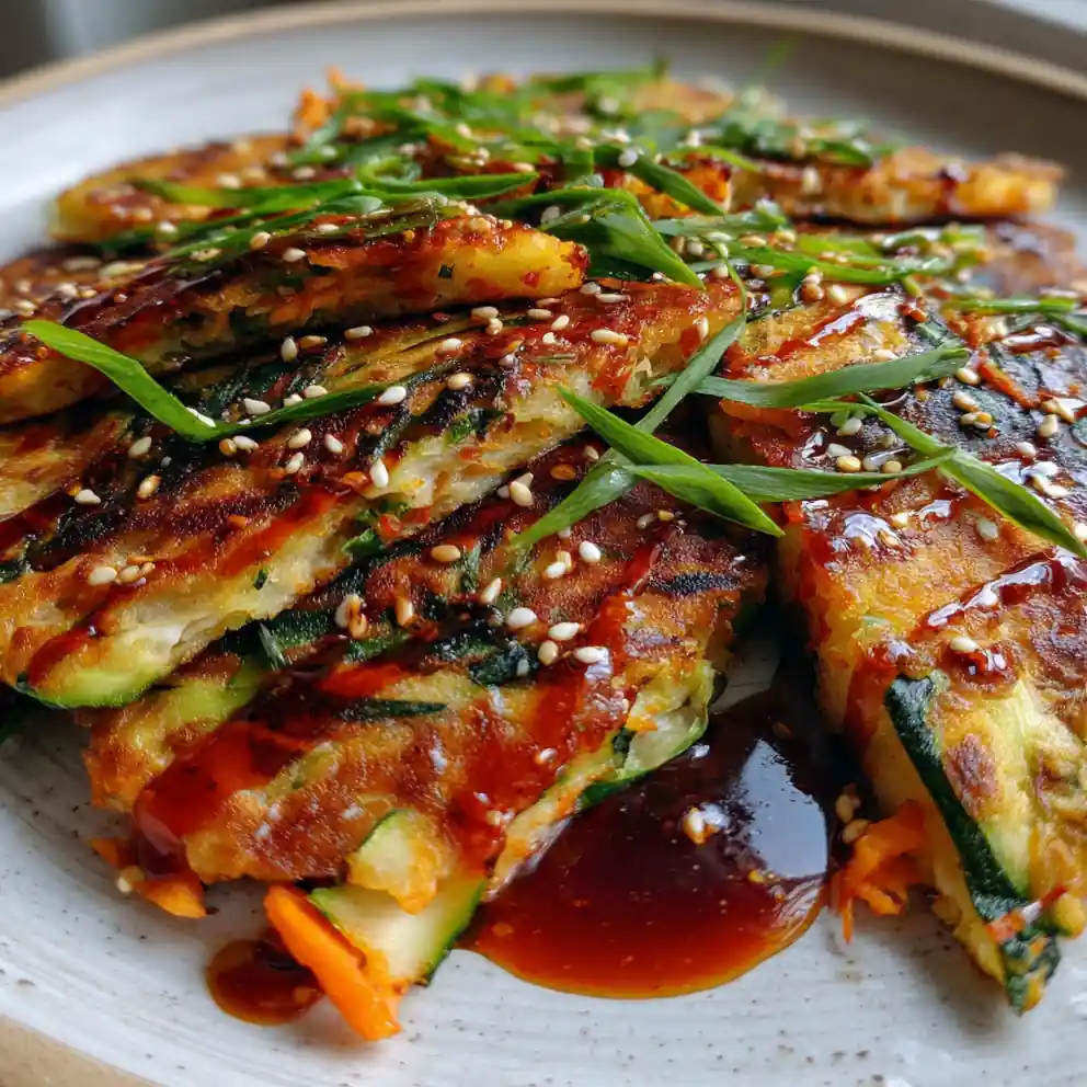 This recipe delivers crispy Korean vegetable pancakes with a fiery gochujang swirl incorporated directly into the batter. It’s suitable as a quick family dinner or appetizer and is ready in less than 30 minutes, offering a satisfying crunch and tender, veggie-filled interior.