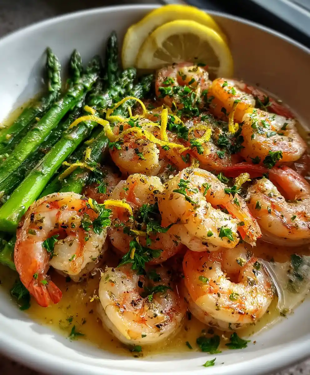 This Lemon Garlic Shrimp and Asparagus recipe is a quick and healthy dinner option, ready in under 20 minutes. It features a bright lemon garlic sauce complementing sweet shrimp and tender asparagus.