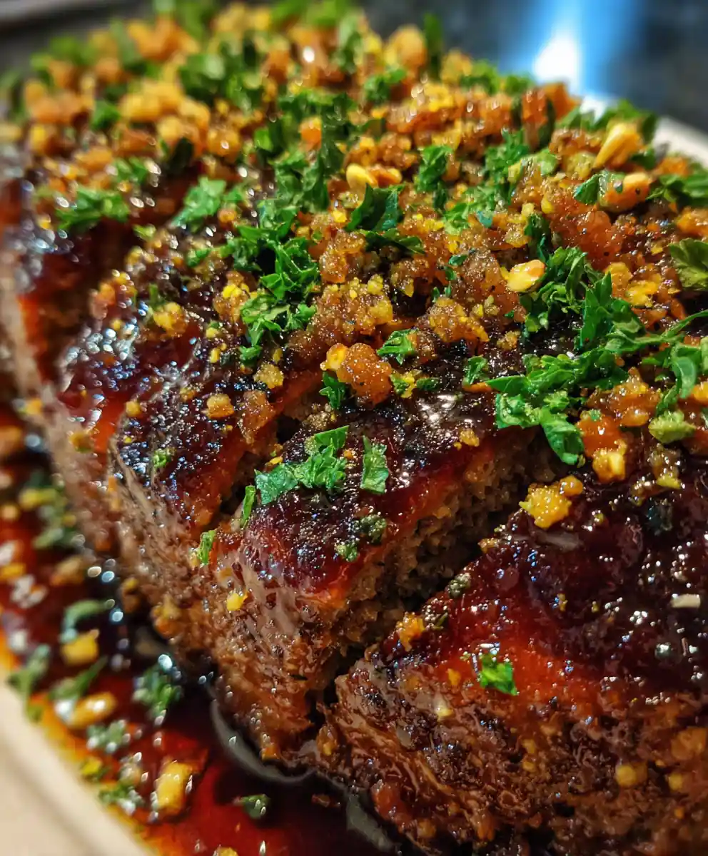 5. Final Bake and Rest: Return the meatloaf to the oven and bake for an additional 20-25 minutes, or until the internal temperature reaches 71 C (160 F) and the glaze is bubbly. Remove from the oven and let it rest for 10-15 minutes before slicing. Garnish with fresh parsley sprigs before serving.