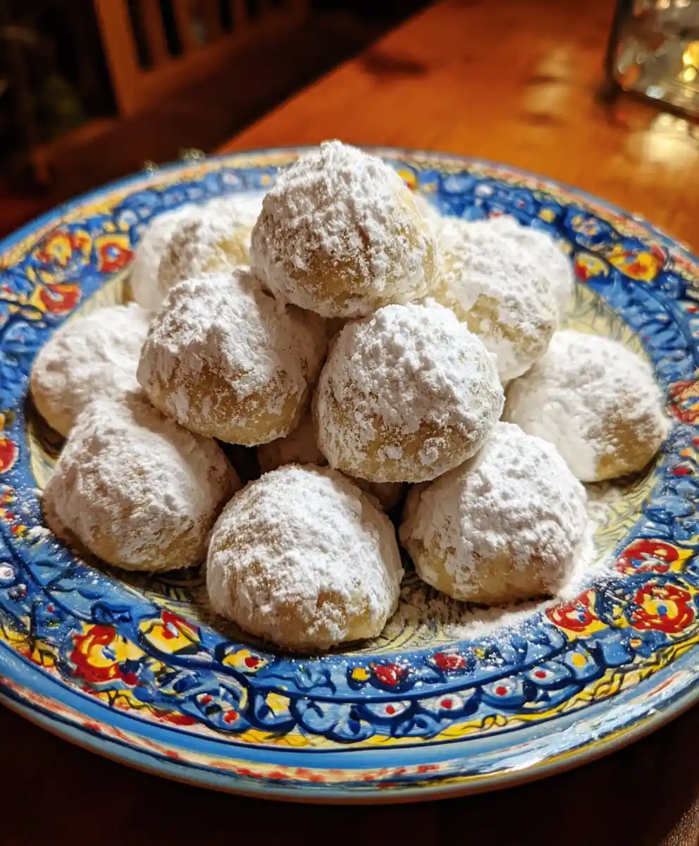7. Second Powdered Sugar Roll (Cooled): Let cookies cool completely on a wire rack. Once fully cooled, roll them again in powdered sugar for a snowy finish.