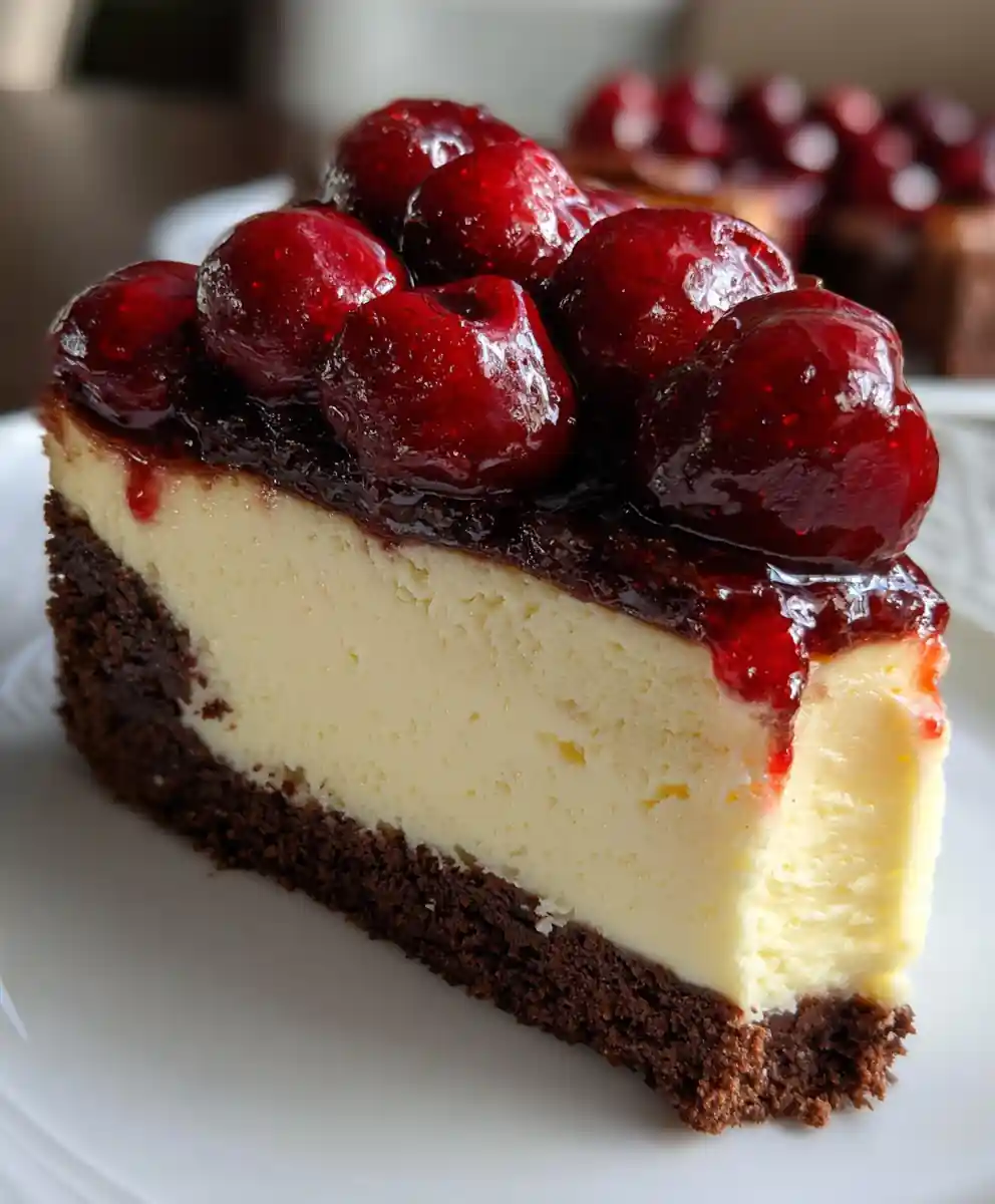This perfected New York cheesecake recipe features a creamy, rich filling atop a decadent cocoa crust, finished with a vibrant cherry topping. It’s a gourmet yet approachable dessert, ideal for any gathering or a special treat at home.