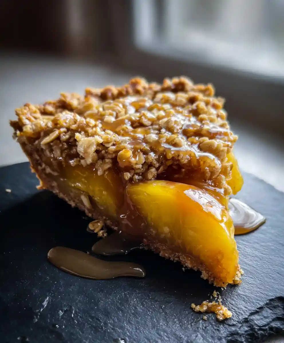 This peach cobbler recipe isn’t just about throwing ingredients together. It’s about understanding how flavors and textures interact. The slight tang of the lemon juice cuts through the sweetness of the peaches and caramel. The almond flour in the crumble adds a subtle nuttiness that complements both the peaches and the brown butter. The combination of rolled oats and flour creates a crumble that’s both tender and satisfyingly chewy. The ginger in both the crumble and the caramel provides a unifying spice that ties everything together.