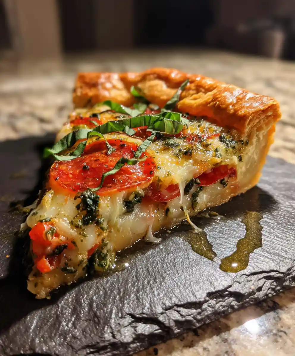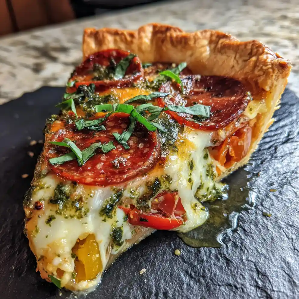 This recipe combines the comforting warmth of a pot pie with the irresistible flavors of pizza, creating a delightful and family-friendly dish. It features a savory pizza-inspired filling with a vibrant basil pesto swirl, all encased in a flaky crust.