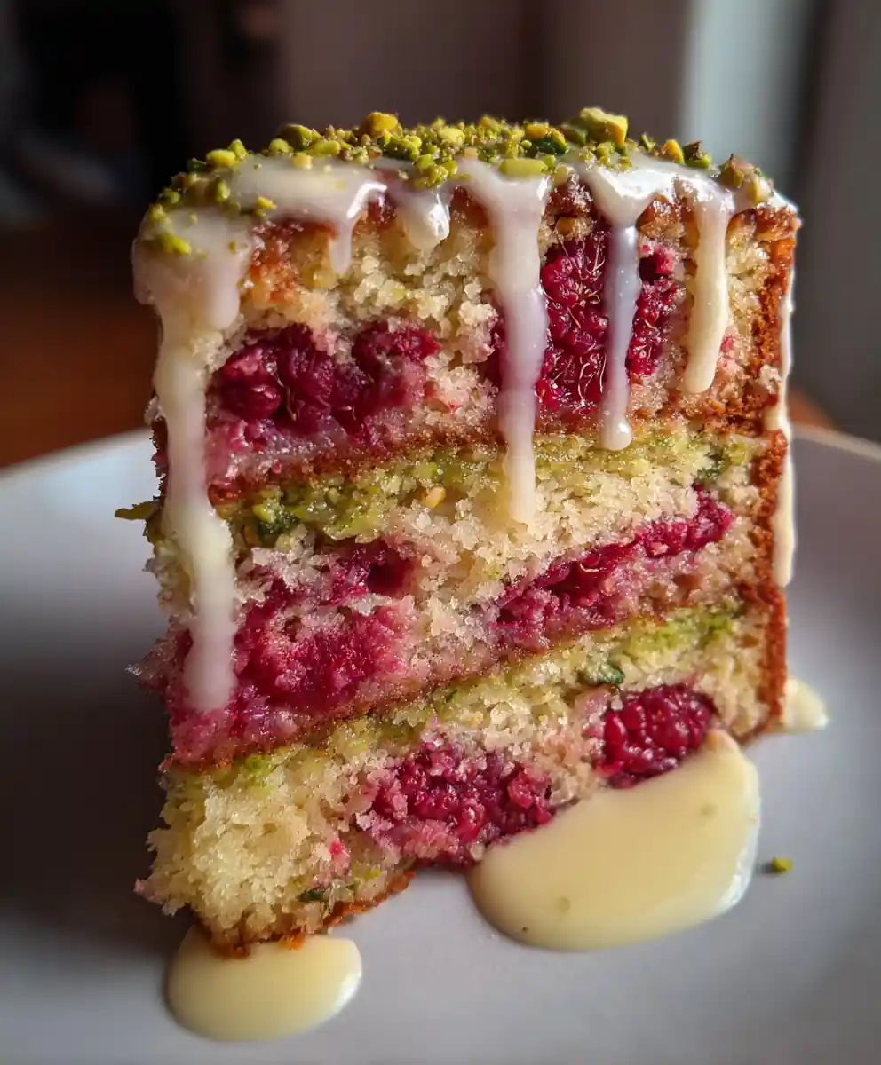 I think every home baker needs one showstopping recipe that doesn’t actually require advanced techniques. This raspberry cake recipe delivers exactly that, creating a stunning visual contrast with vibrant pink raspberries and a rich green pistachio ribbon hidden inside a moist Bundt cake. The flavors are bright and fresh, enhanced by a delicate hint of rosewater in both the cake and the final glaze. Itโs perfect for a weekend bake when you want to impress family or guests with minimal effort or as a centerpiece for any gathering.