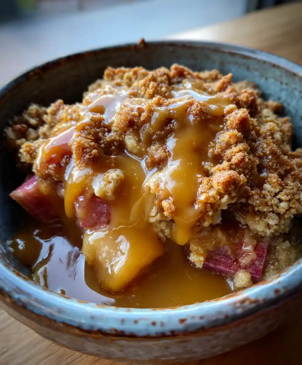 This rhubarb crisp recipe elevates the classic dessert with a nutty brown butter caramel drizzle. The golden, crunchy topping and tart-sweet filling create a satisfying treat.