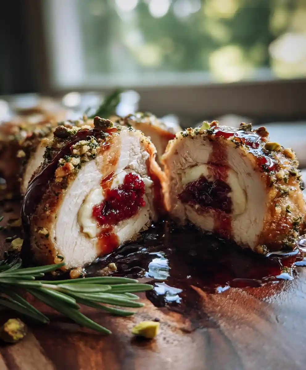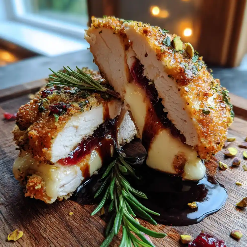 This Rosemary Pistachio Crusted Cranberry Brie Stuffed Chicken is a delightful combination of savory chicken, creamy brie, tart cranberries, and a crunchy pistachio crust. It’s an impressive yet easy-to-make dish perfect for any occasion.