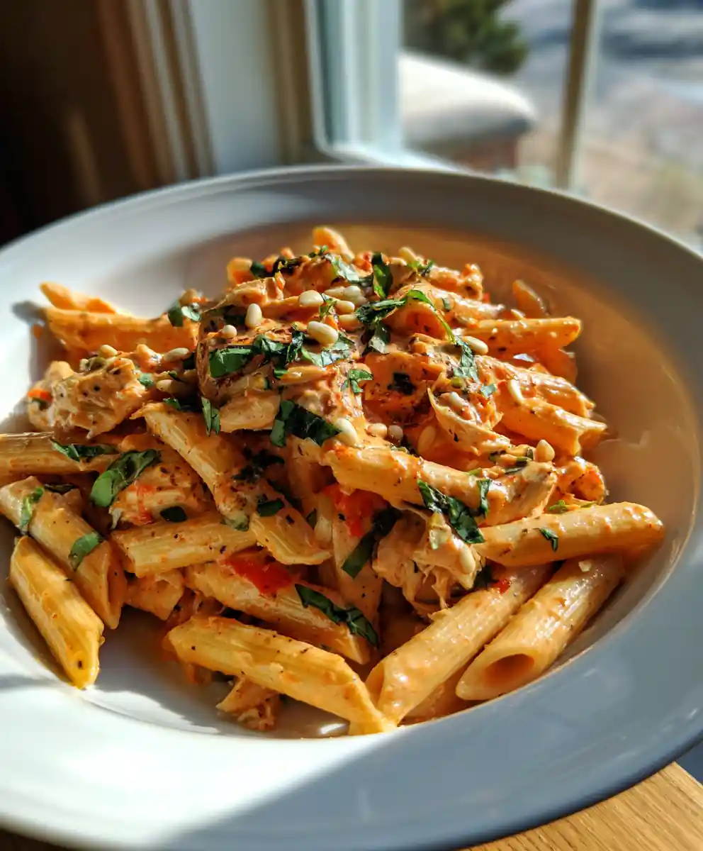 This Rotisserie Chicken Pasta with Roasted Red Pepper Cream and Basil Pesto Swirl is a delightful and satisfying meal that’s perfect for a weeknight dinner or a special occasion. The combination of creamy sauce, tender chicken, and vibrant pesto is sure to impress. Don’t forget to save this recipe to Pinterest for later!