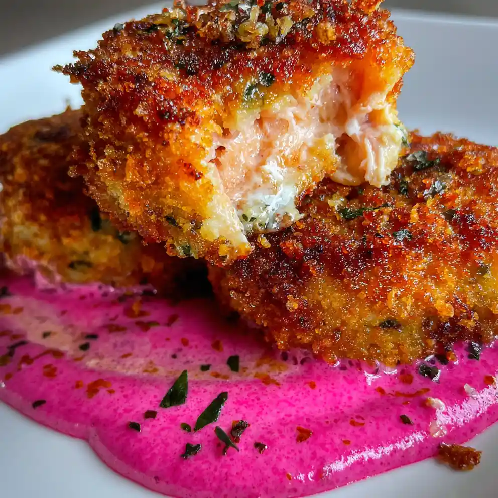 This salmon croquette recipe features golden-crisp patties with a tender, savory interior, brightened by a creamy, vibrant Pink Beet Aioli. It’s a high-protein, family-friendly meal that comes together in under 30 minutes using pantry staples.