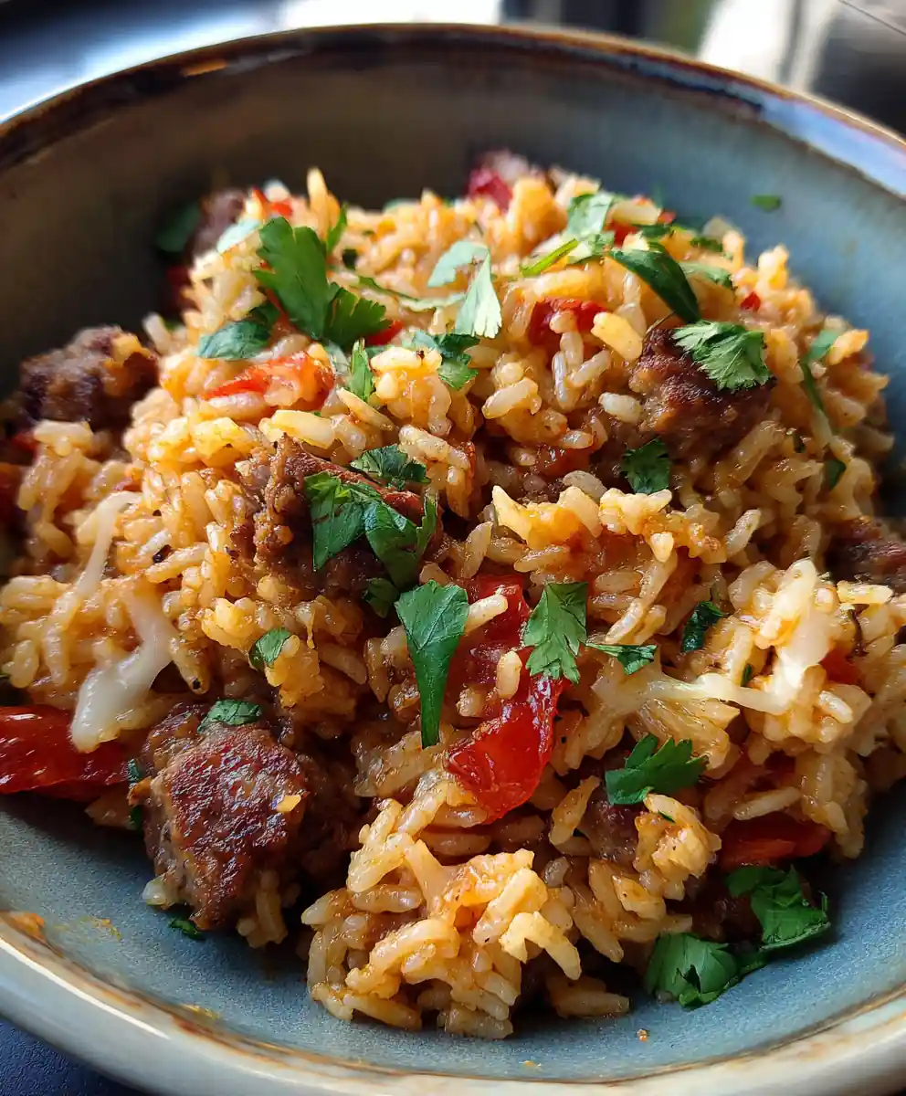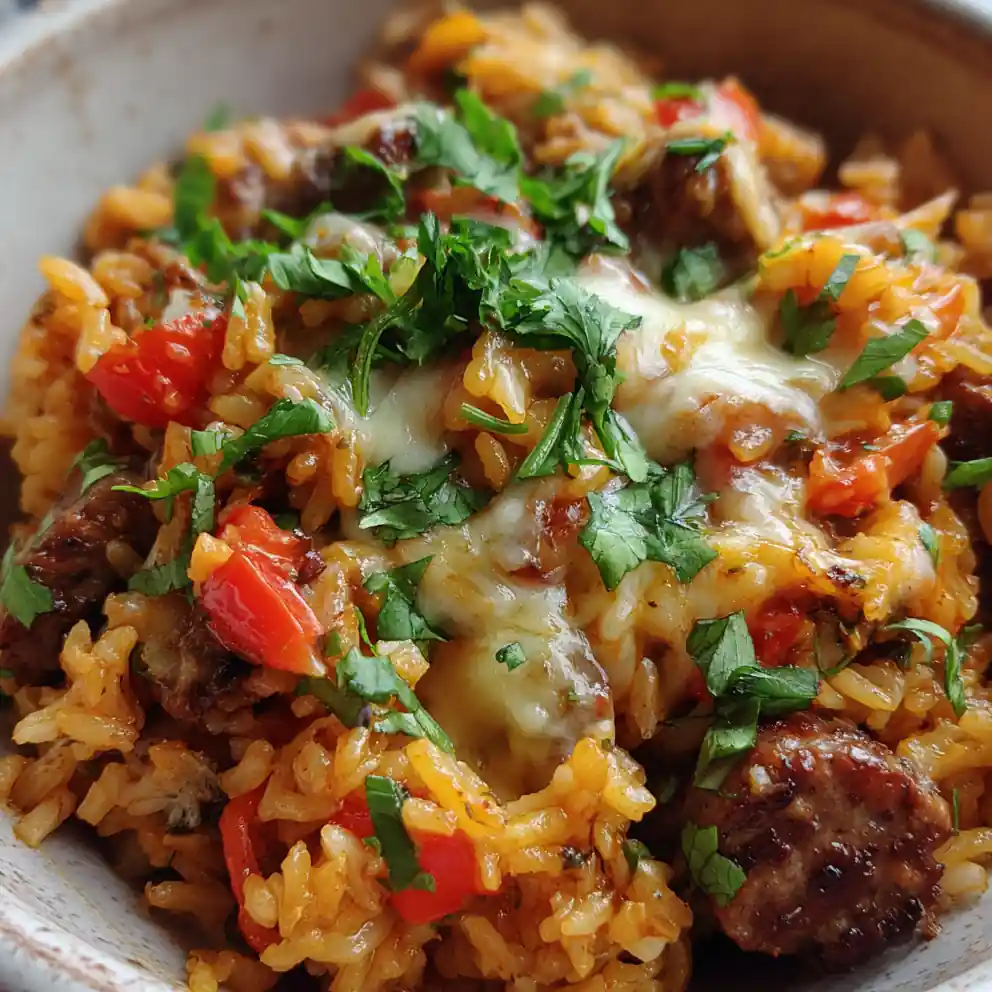This smoky sausage rice recipe is a flavorful and easy dinner idea, perfect for busy evenings. It features hearty beef sausage and fire-roasted tomatoes, finished with a creamy Pepper Jack cheese swirl for maximum comfort.