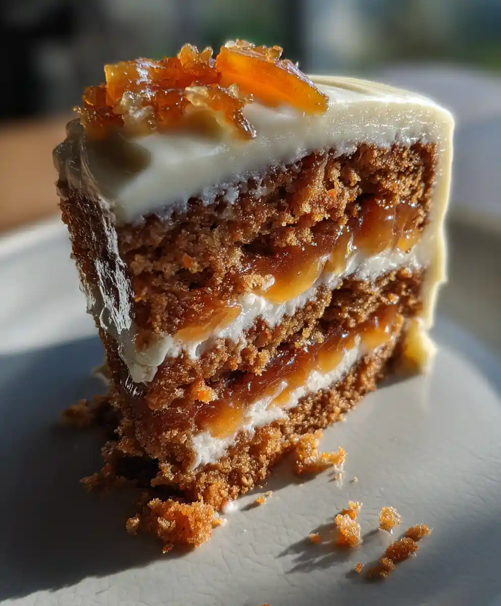 - Assemble Cakes: Once completely cool, spread a generous layer of the Apricot-Cardamom Ribbon over the top of the cake, followed by a thick layer of Ginger Cream Cheese Frosting. Garnish with additional candied ginger pieces.