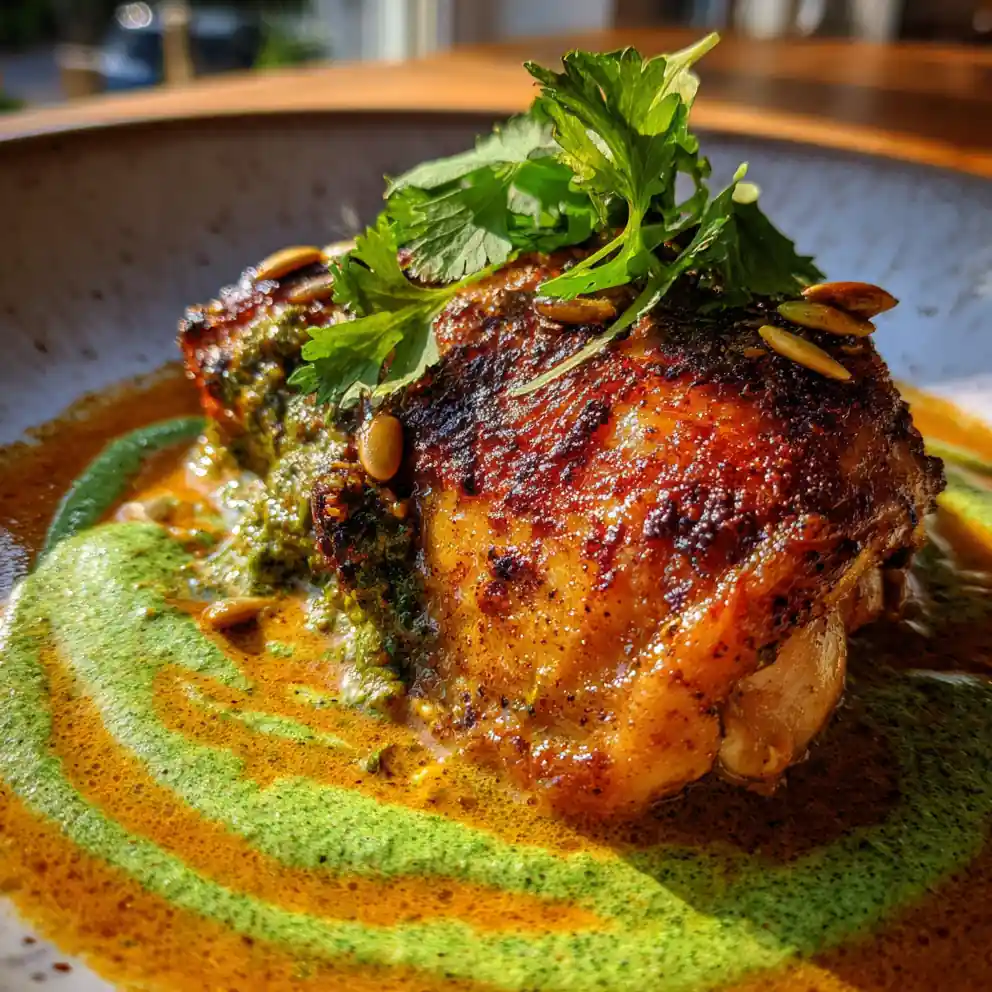 These Smothered Chicken Thighs offer a comforting yet impressive meal with crispy skin and a rich, smoky paprika gravy, complemented by a bright cilantro-lime cashew swirl. It’s a restaurant-quality dish made easy for a weeknight dinner.