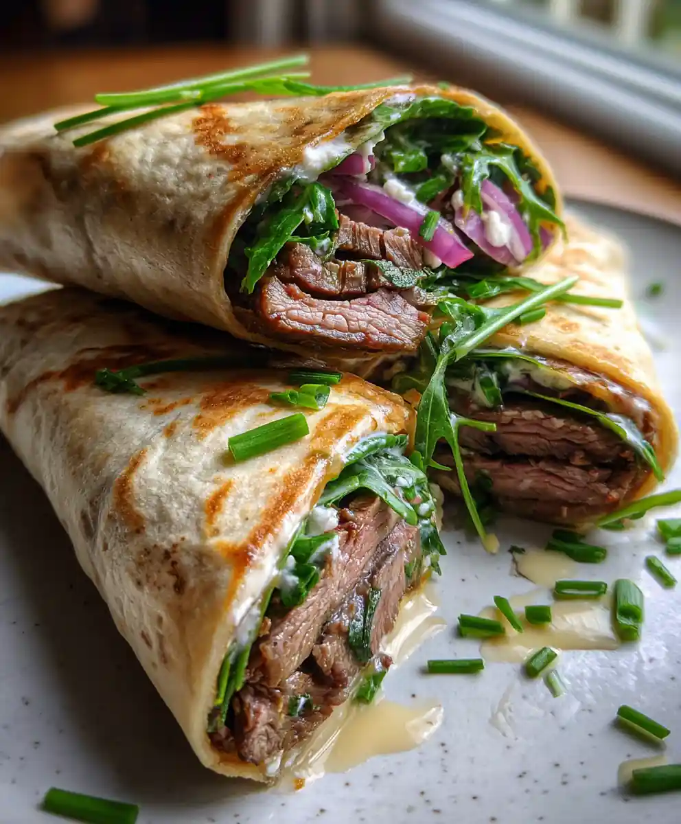 - Fresh Arugula: A handful (100 g or 3.5 oz) of fresh arugula or mixed greens adds a peppery bite and crunch to contrast the creamy spread and tender steak. Arugula holds up well in a wrap and doesn’t wilt as quickly as some other greens. Baby spinach can be substituted if you prefer a milder flavor profile.