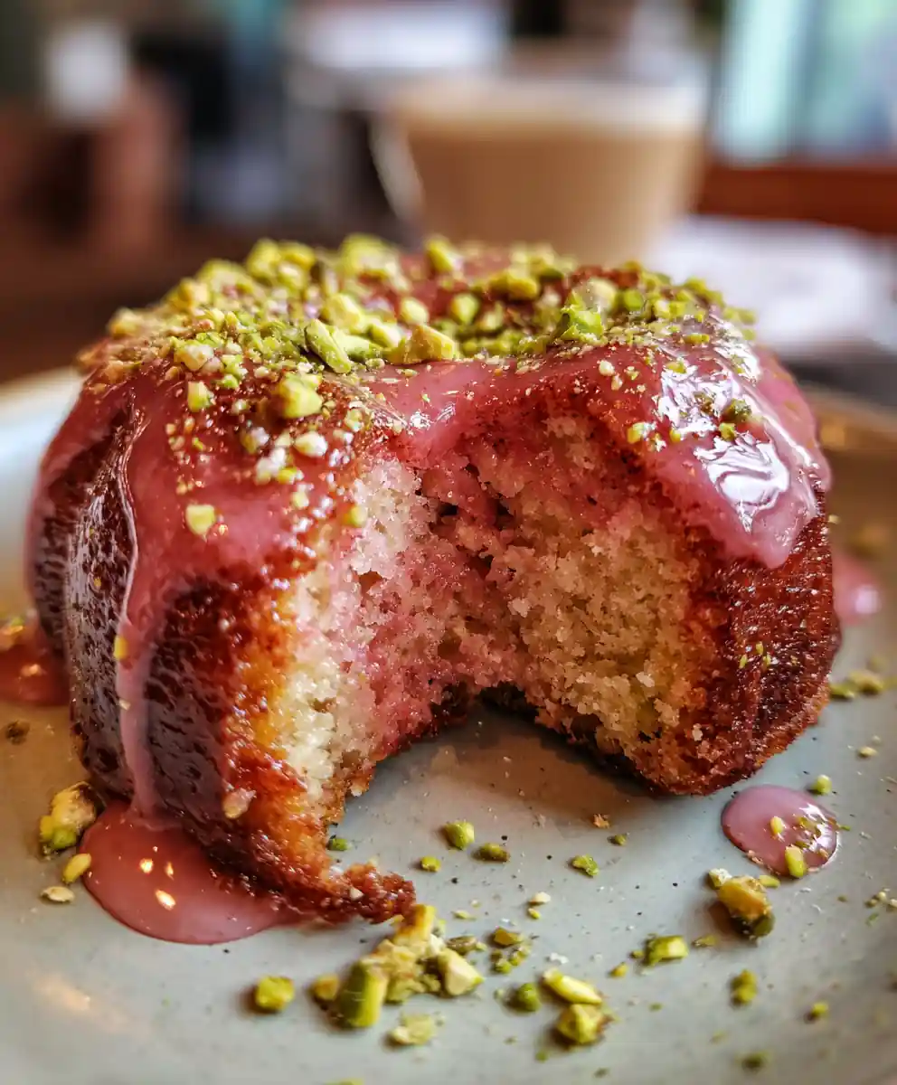Once the cake is out of the oven, immediately pour the warm Strawberry Honey Glaze evenly over the hot cake; it will melt and seep into the cake, creating a glossy, moist finish. Allow the cake to cool in the pan for at least 30 minutes before slicing to allow the glaze to set slightly. The cake will feel wonderfully soft and moist. Garnish immediately with a sprinkle of finely crushed pistachios for extra color and texture.