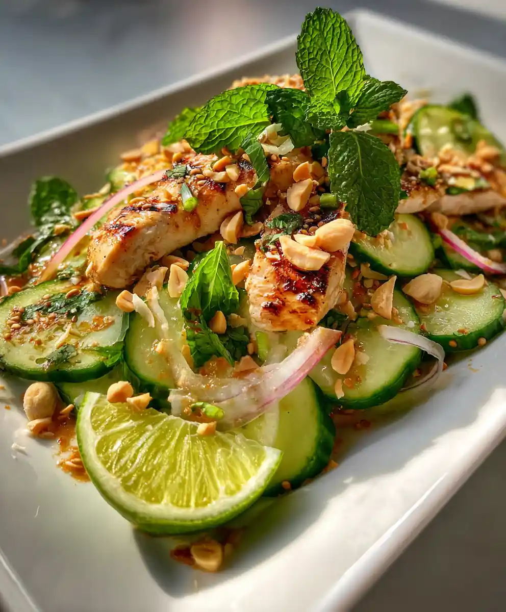 This Thai Cucumber Salad with Grilled Chicken is a vibrant and flavorful dish balancing crisp cucumbers with savory grilled chicken in a zesty Thai-inspired dressing. It’s perfect for a quick and refreshing meal.