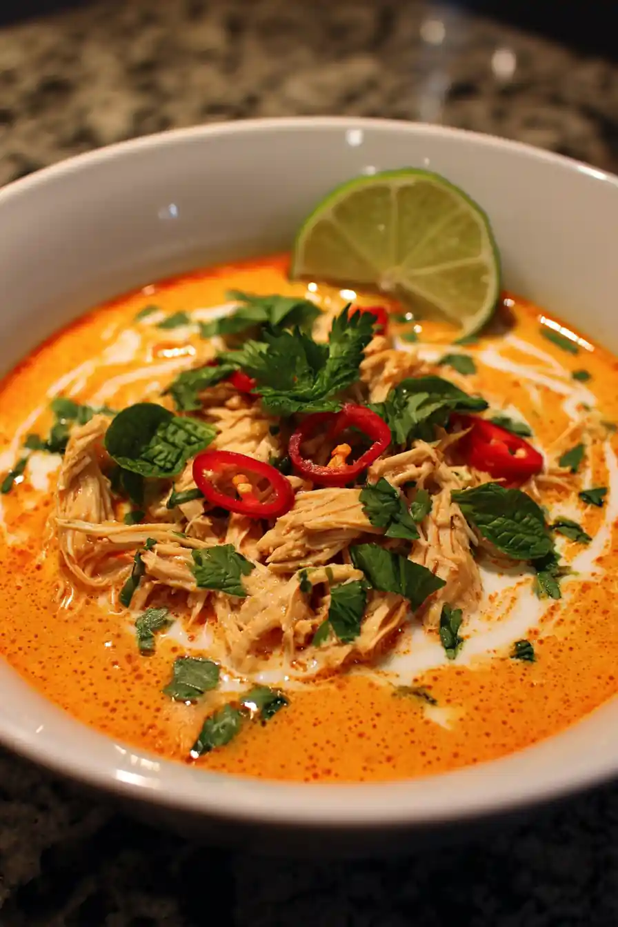 - Garnish and Enjoy: Swirl a thin line of coconut milk around the bowl rim for a visually appealing touch. Sprinkle generously with chopped cilantro and Thai basil. Arrange a few thinly sliced red chili peppers on top for a pop of color and heat. Serve with a lime wedge on the side for an extra burst of freshness. A light dusting of freshly ground black pepper adds a subtle contrast.