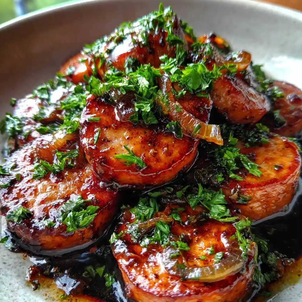 - Serve Immediately: Serve the glazed turkey sausage and onions immediately, garnished with fresh chopped parsley or thyme.