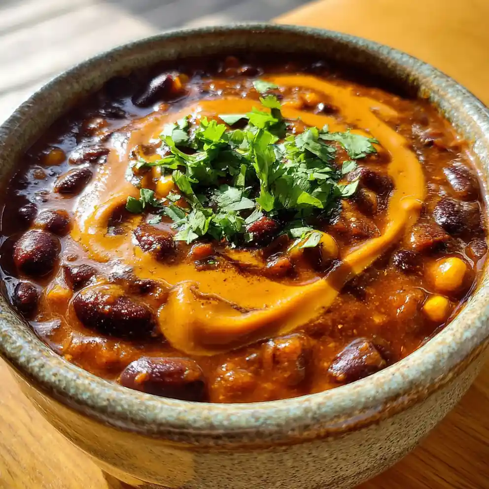 The smoky chipotle swirl is a creamy, dairy-free topping made from cashews and chipotle peppers in adobo sauce. It adds a rich, cool contrast to the hot chili and layers in a complex smoky flavor. This swirl takes this simple vegan chili recipe easy to a gourmet level, making it feel extra special for family dinners.
